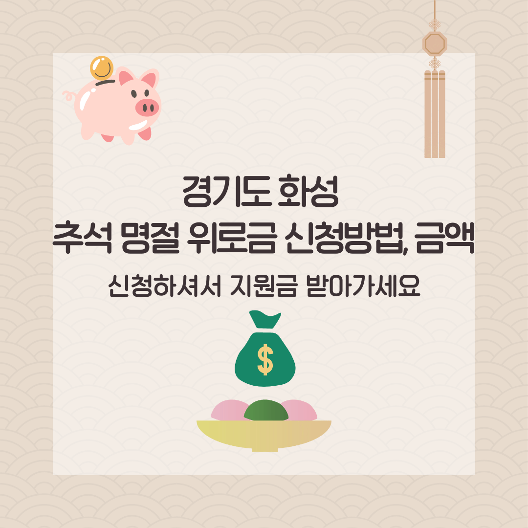 2024년 추석이 다가오고 있습니다. 경기도 화성에서 추석 명절 위로금을 받을 수 있는 대상이 있는데요. 이번 글을 통해서 경기도 화성 추석 명절 위로금 신청대상, 신청방법 및 금액에 대해 알아보도록 하겠습니다.